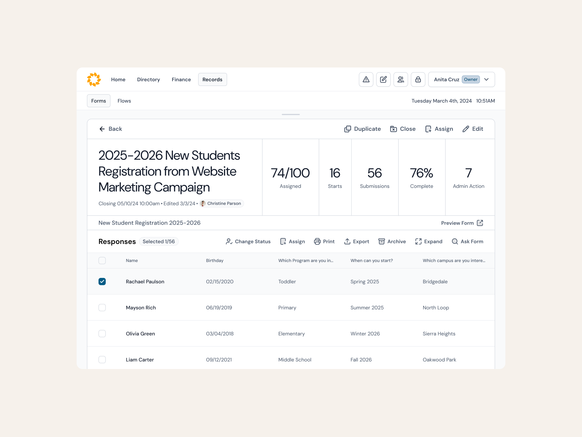 A flexible, modular system for managing student enrollment, staff applications, and more—built to streamline workflows and reduce admin burden.