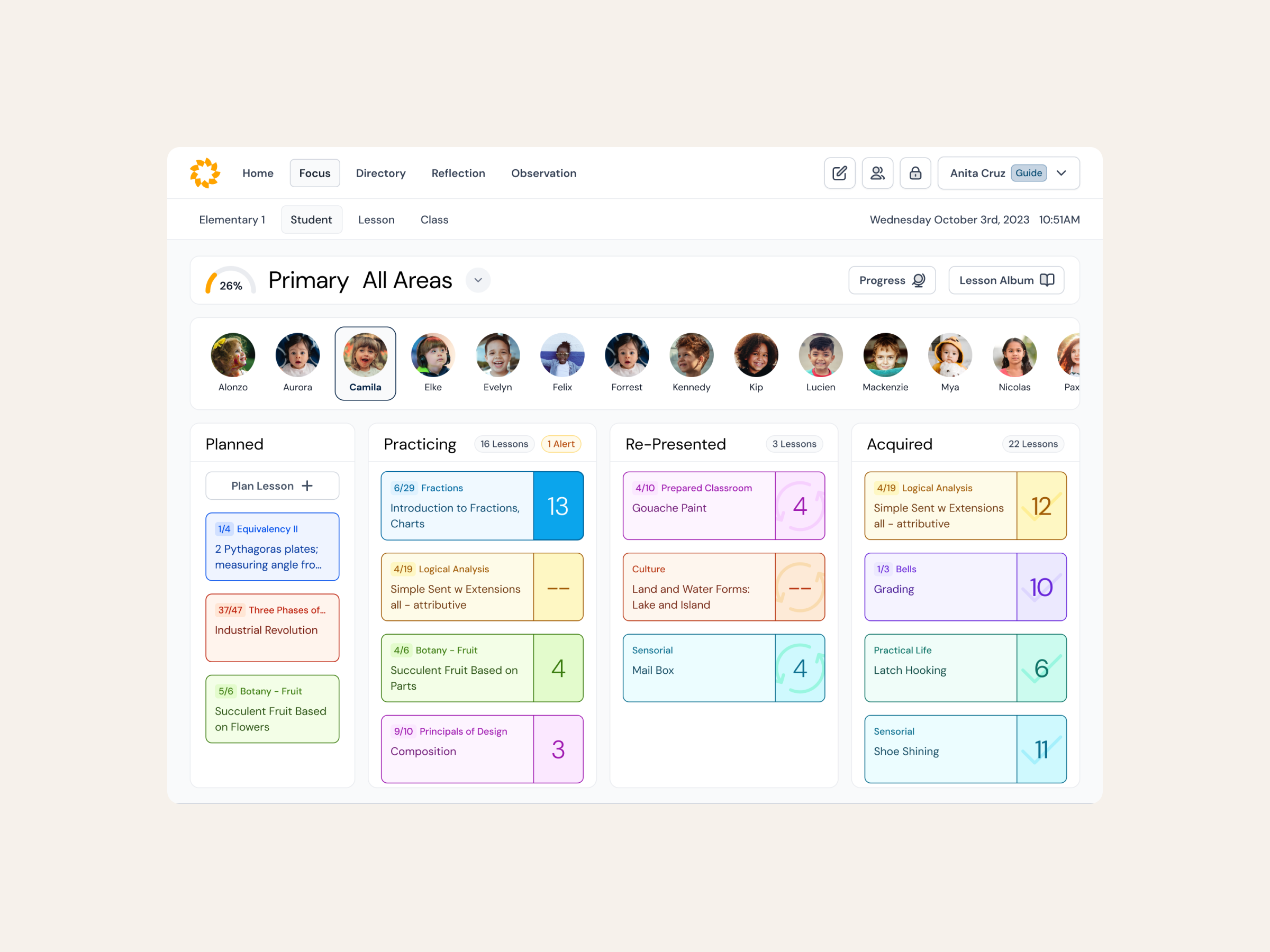 Introducing a purpose-built planning and record-keeping system designed specifically for Montessori classrooms. Guide Focus Modes replaces paper notebooks with a digital workflow that supports personalized instruction, tracks student progress, and improves classroom continuity across staff.